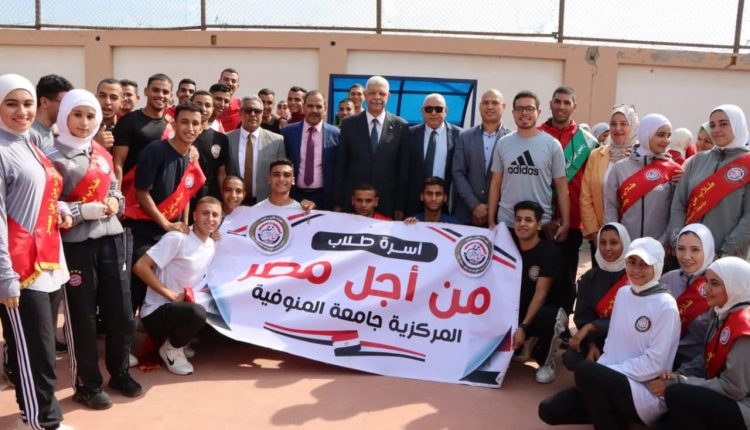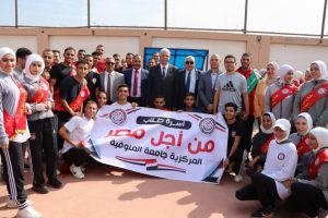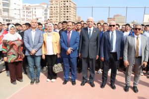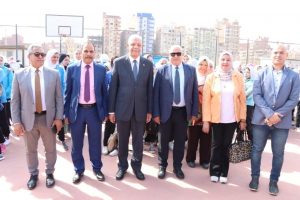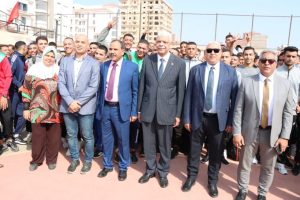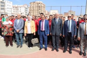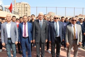 رئيس جامعة المنوفية يشهد تحية العلم بالتربية الرياضية